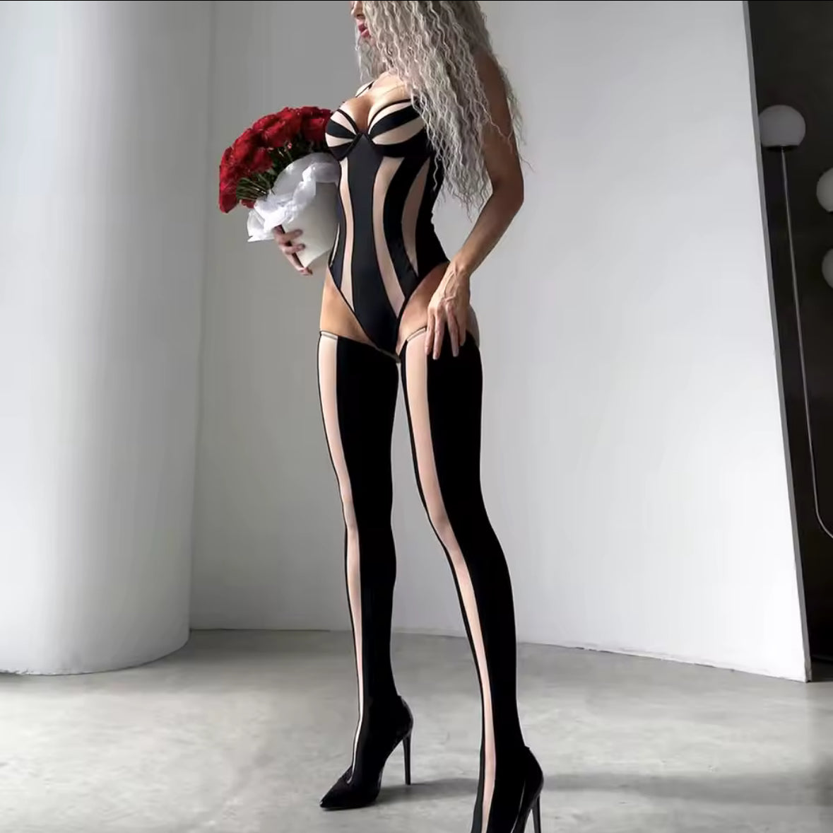 The Midnight Illusion Corset Set is designed to sculpt the waist, elevate the bust, and elongate the legs with bold sheer panels that contour every curve. This luxury one piece is soft, stretchy, and supportive with a sleek high fashion finish perfect for photoshoots, date nights, or just feeling powerful at home.